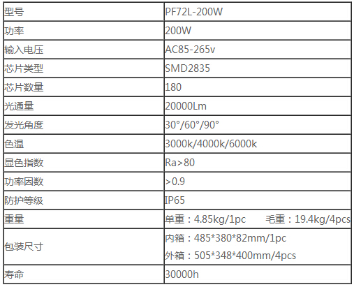 泛光燈技術參數